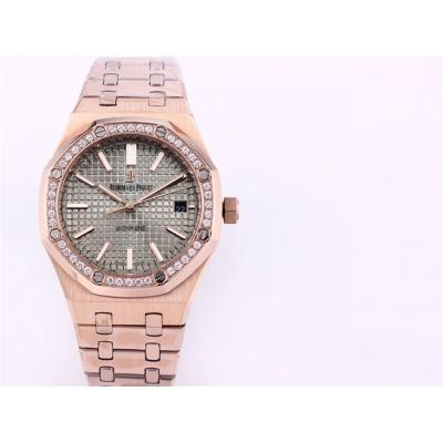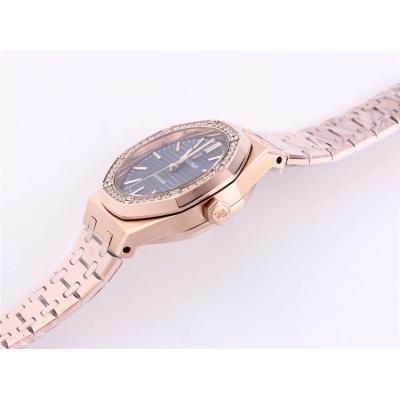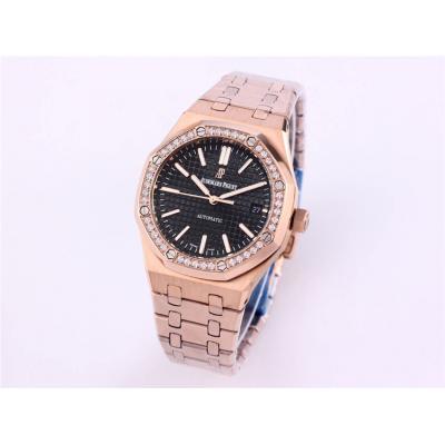 Home AAA-Brand Replica Royal Oak A21j Automatic Movement Womens Watch Black Dial Diamonds Case Rose Gold D E227