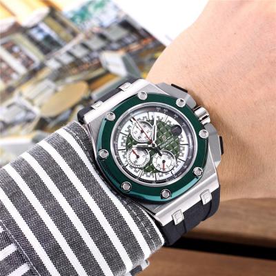Home AAA-Brand Replica Royal Oak Japan Quartz chronograph Mens Watch Green Dial Rubber Strap B E64