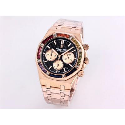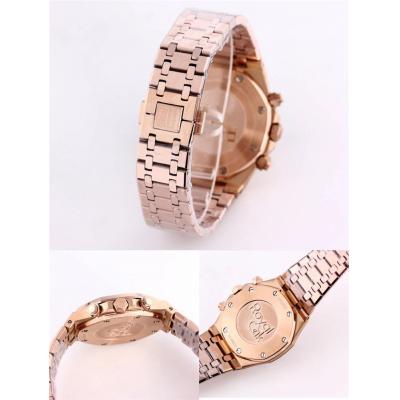 Replica Royal Oak Japan Quartz chronograph Movement Mens Watch Black Dial Rose Gold B A01