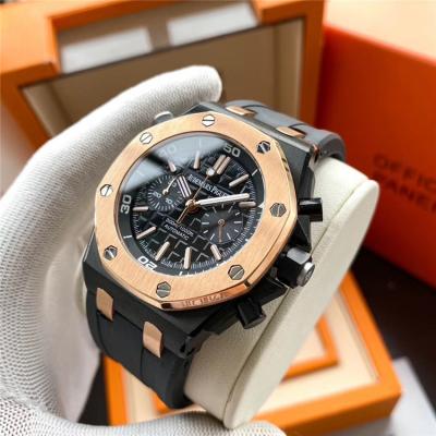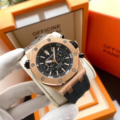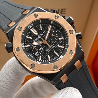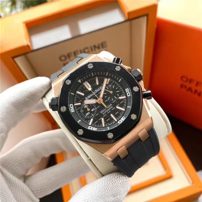 Home AAA-Brand Replica Royal Oak Japan Quartz chronograph Movement Mens Watch Black Dial Rubber Strap A E153