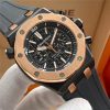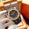 Replica Royal Oak Japan Quartz chronograph Movement Mens Watch Black Dial Rubber Strap A E153