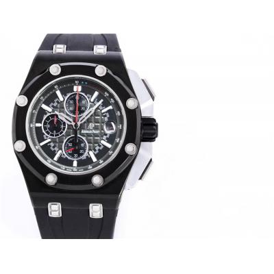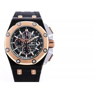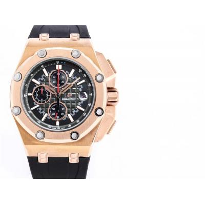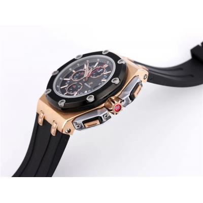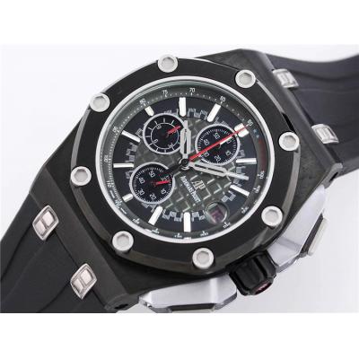 Replica Royal Oak Japan Quartz chronograph Movement Mens Watch Black Dial Rubber Strap A15