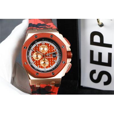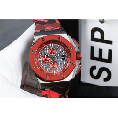 Replica Royal Oak Japan Quartz chronograph Movement Mens Watch Red Dial Rubber Strap E133
