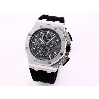 Replica Royal Oak Japan Quartz chronograph Movement Mens Watch Skeleton Dial Rubber Strap C A06