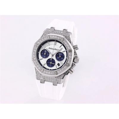 Replica Royal Oak Japan Quartz chronograph Movement Womens Watch White Dial Rubber Strap A A04 $300.00 $250.00
