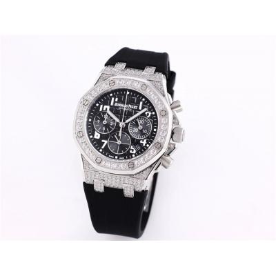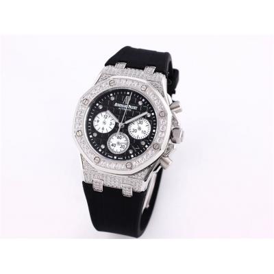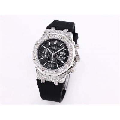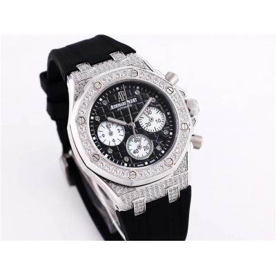 Home AAA-Brand Replica Royal Oak Japan Quartz chronograph Movement Womens Watch Black Dial Rubber Strap B A04