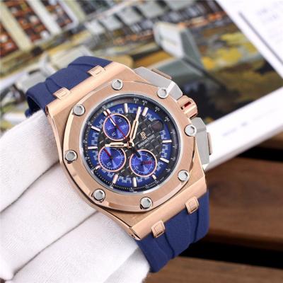 Home AAA-Brand Replica Royal Oak Japan vk Quartz chronograph Mens Watch Blue Dial Rubber Strap A E64