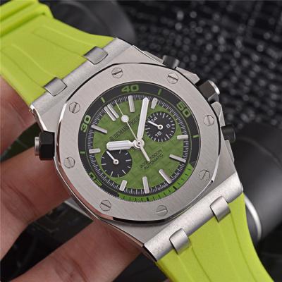 Replica Royal Oak Japan VK Quartz chronograph Mens Watch Green Dial Rubber Strap E90