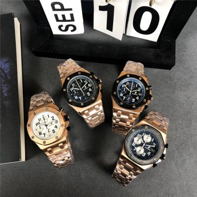 Replica Royal Oak Japan VK Quartz chronograph Mens Watch White Dial Rose Gold A E119