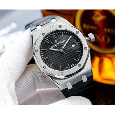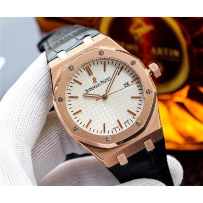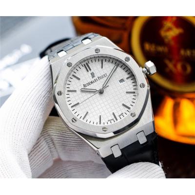 Home AAA-Brand Replica Royal Oak Miyota 8205 Automatic Movement Mens Watch White Dial Leather Strap E105