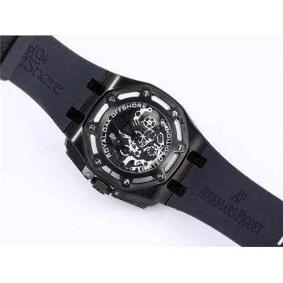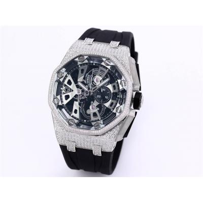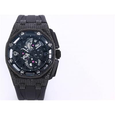 Home AAA-Brand Replica Royal Oak Offshore Japan Quartz chronograph Movement Mens Watch Black Dial Diamonds Case Rubber Strap A28