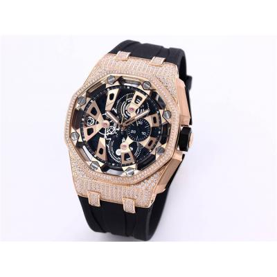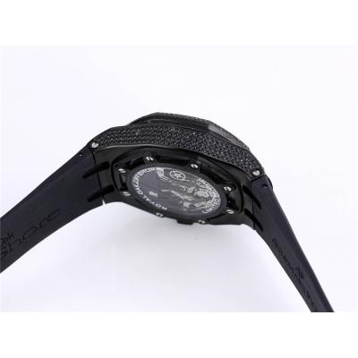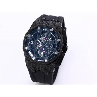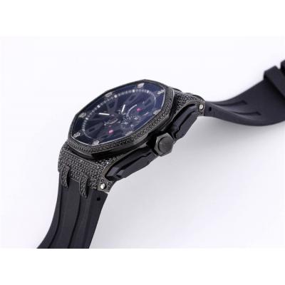 Replica Royal Oak Offshore Japan Quartz chronograph Movement Mens Watch Black Dial Diamonds Case Rubber Strap A28