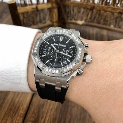 Home AAA-Brand Replica Royal Oak Offshore Japan Quartz chronograph Movement Womens Watch Black Dial Rubber Strap B E156
