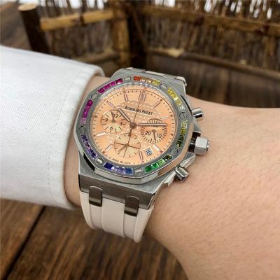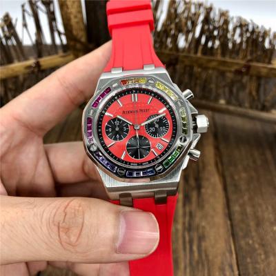 Replica Royal Oak Offshore Japan Quartz chronograph Movement Womens Watch Red Dial Rubber Strap B E155