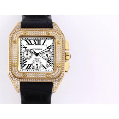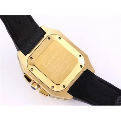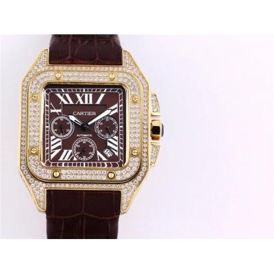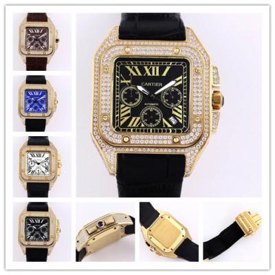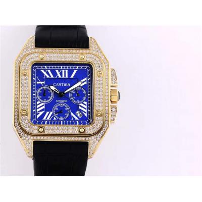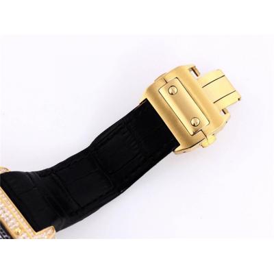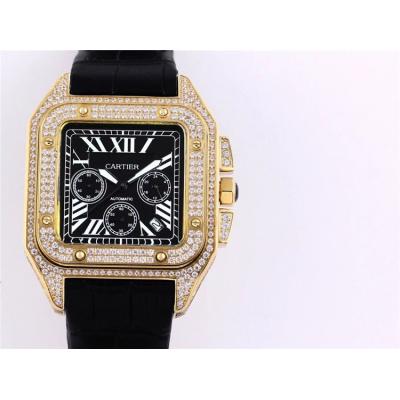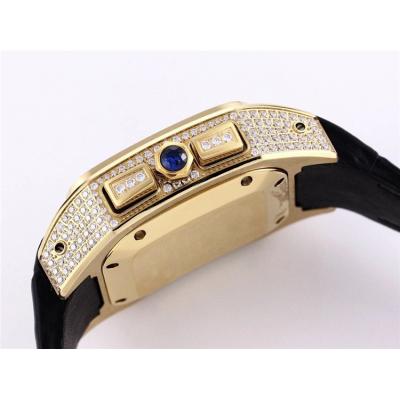 Replica Santos A21j Automatic Movement Mens Watch Full Diamonds Dial Leather Strap A E236 $432.00 $360.00