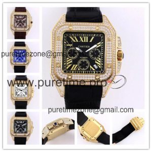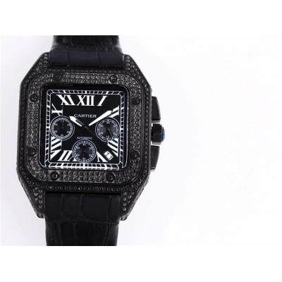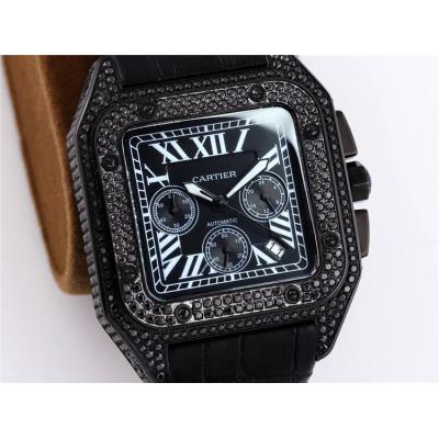 Replica Santos A21j Automatic Movement Mens Watch Black Dial Leather Strap B E236 $432.00 $360.00