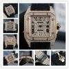 Replica Santos A21j Automatic Movement Mens Watch Full Diamonds Dial Leather Strap E145