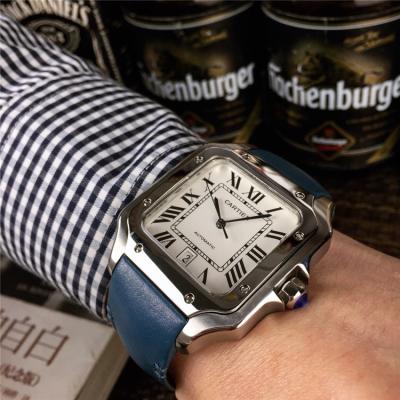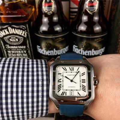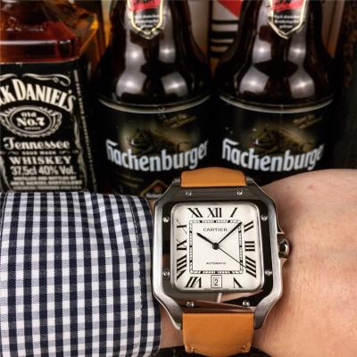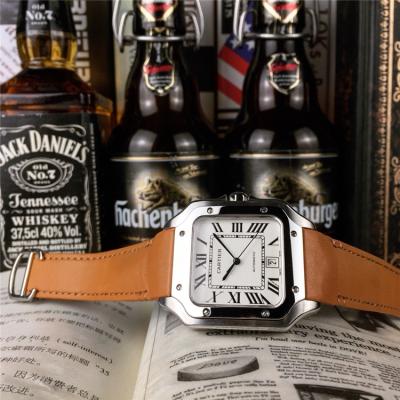 Home AAA-Brand Replica Santos Japan Miyota 8215 Automatic Movement Mens Watch White Dial Leather Strap E23