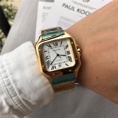 Home AAA-Brand Replica Santos Japan Miyota 8215 Automatic Movement Mens Watch White Dial Yellow Gold E76