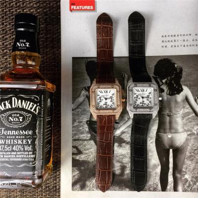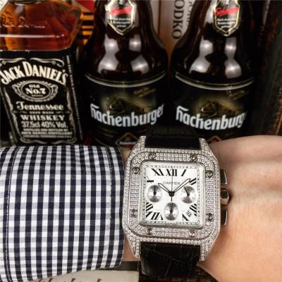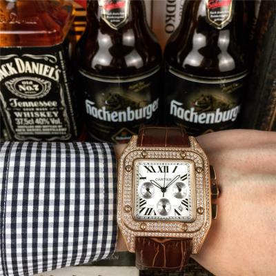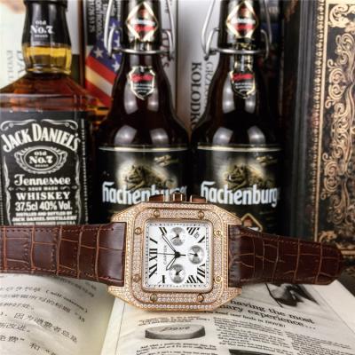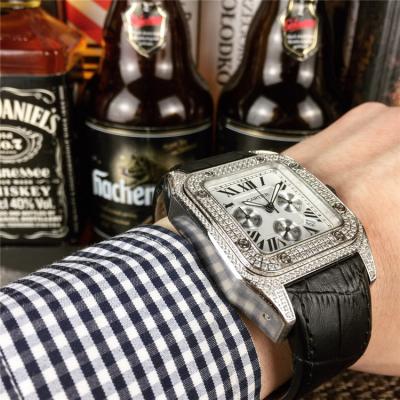 Home AAA-Brand Replica Santos Japan Quartz Chronograph Movement Mens Watch White Dial Leather Strap E43