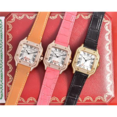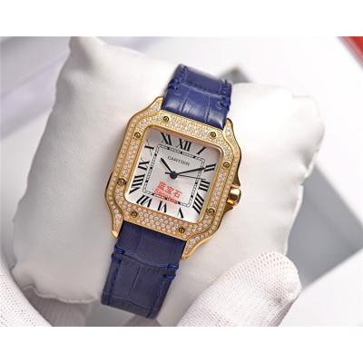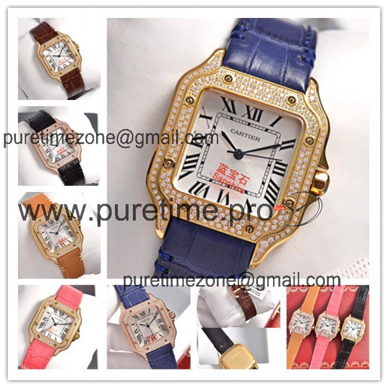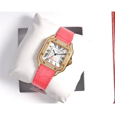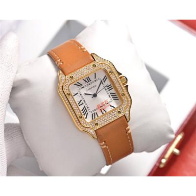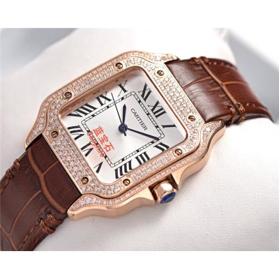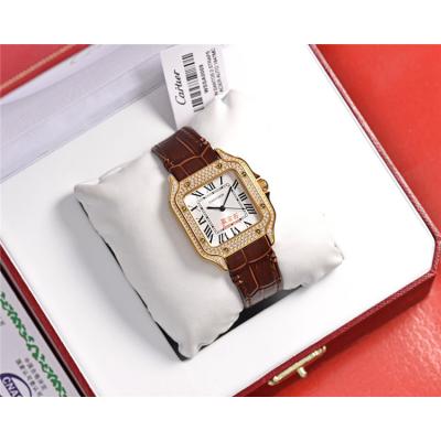 Replica Santos Swiss Quartz Movement Womens Watch White Dial Leather Strap A E144