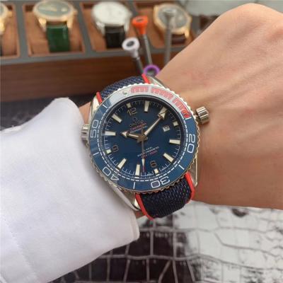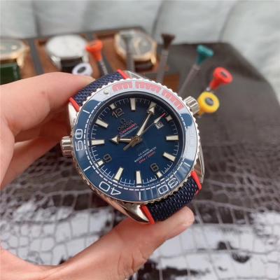 Home AAA-Brand Replica Seamaster Japan Miyota 8215 Automatic Movement Mens Watch Blue Dial Leather Strap E188