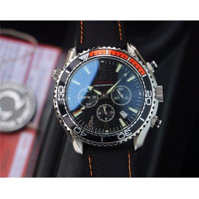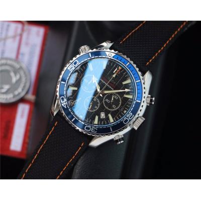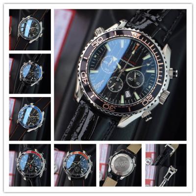 Home AAA-Brand Replica Seamaster Japan OS Quartz Chronograph Movement Mens Watch Black Dial Leather Strap E285