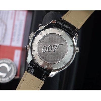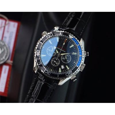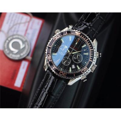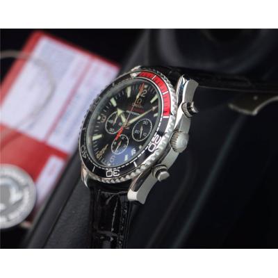 Replica Seamaster Japan OS Quartz Chronograph Movement Mens Watch Black Dial Leather Strap E285