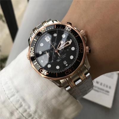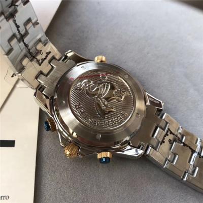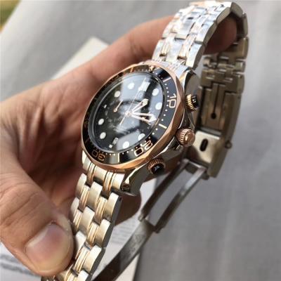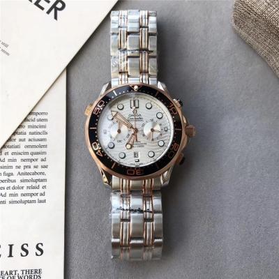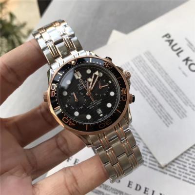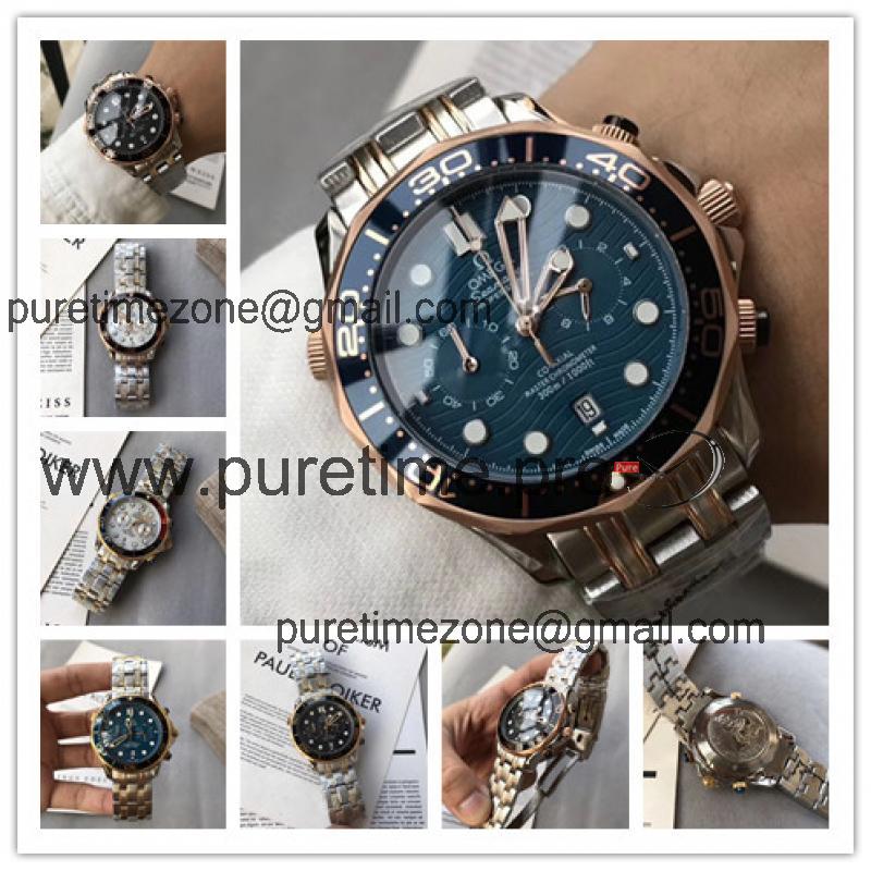 Replica Seamaster Japan Quartz Chronograph Movement Mens Watch Blue Dial Two Tone Rose Gold B E182