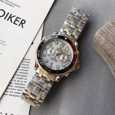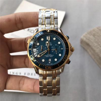 Home AAA-Brand Replica Seamaster Japan Quartz Chronograph Movement Mens Watch Blue Dial Two Tone Rose Gold B E182