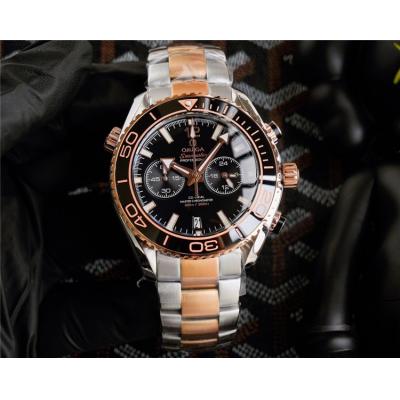 Replica Seamaster Japan VK Quartz Chronograph Movement Mens Watch Black Dial Stainless Steel E419