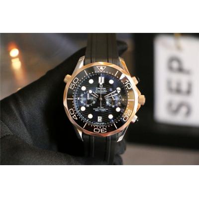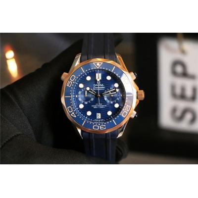 Replica Seamaster Japan VK Quartz Chronograph Movement Mens Watch Blue Dial Two Tone Rose Gold E287