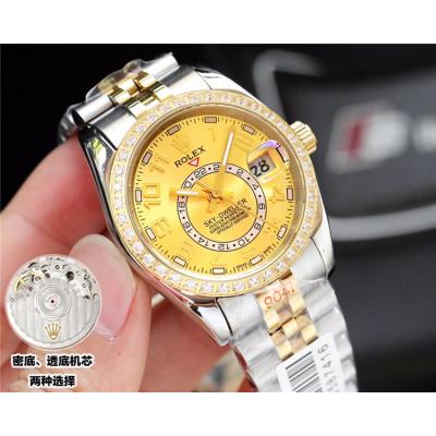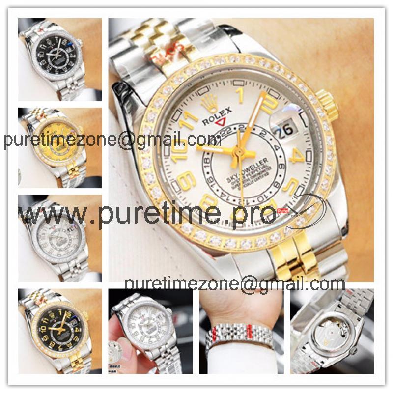 Replica Sky-Dweller Miyota 821A Automatic Movement Mens Watch White Dial Jubilee Bracelet Two Tone Yellow Gold A E50