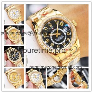Replica Sky-Dweller Miyota 821A Automatic Movement Mens Watch Black Dial Jubilee Bracelet Yellow Gold B E50 $300.00 $250.00