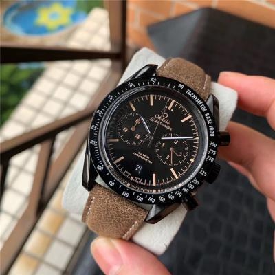 Home AAA-Brand Replica Speedmaster A21j Automatic Movement Mens Watch Black Dial Leather Strap E400