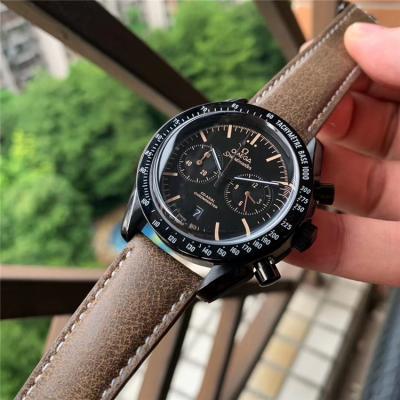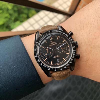 Replica Speedmaster A21j Automatic Movement Mens Watch Black Dial Leather Strap E400
