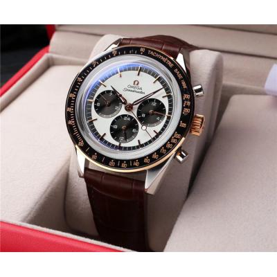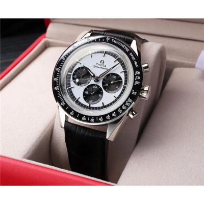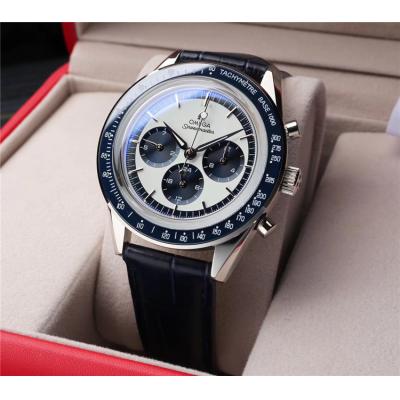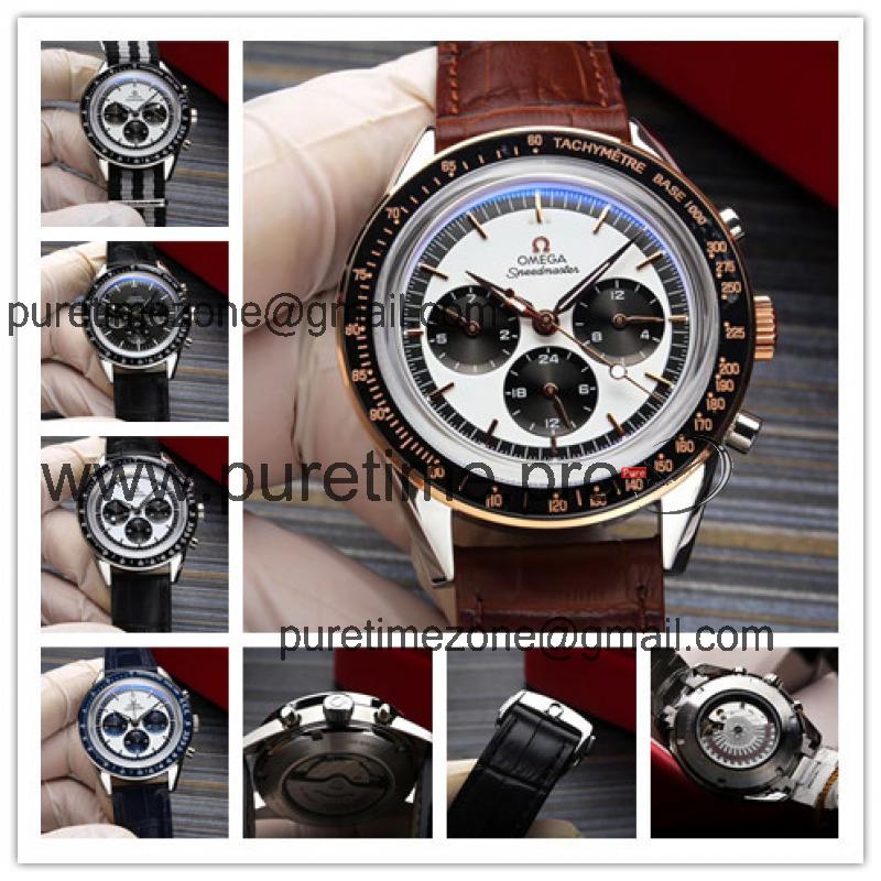 Replica Speedmaster A21j Automatic Movement Mens Watch White Dial Leather Strap B E405