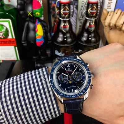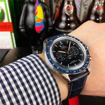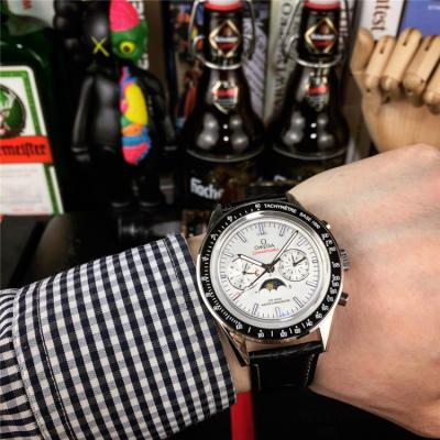 Replica Speedmaster A21j Automatic Movement Mens Watch White Dial Leather Strap E367