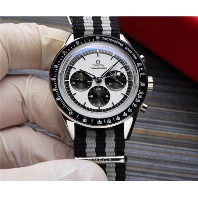 Home AAA-Brand Replica Speedmaster A21j Automatic Movement Mens Watch White Dial Nylon Strap B E378