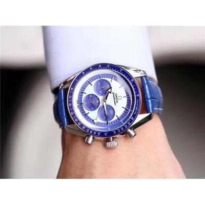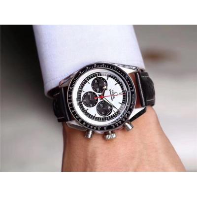 Home AAA-Brand Replica Speedmaster Japan OS Quartz Chronograph Movement Mens Watch White Black Dial Leather Strap E403