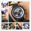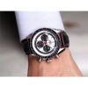 Replica Speedmaster Japan OS Quartz Chronograph Movement Mens Watch White Black Dial Leather Strap E403