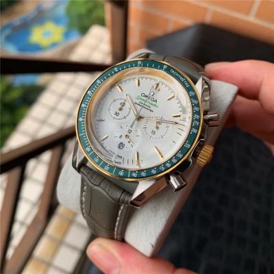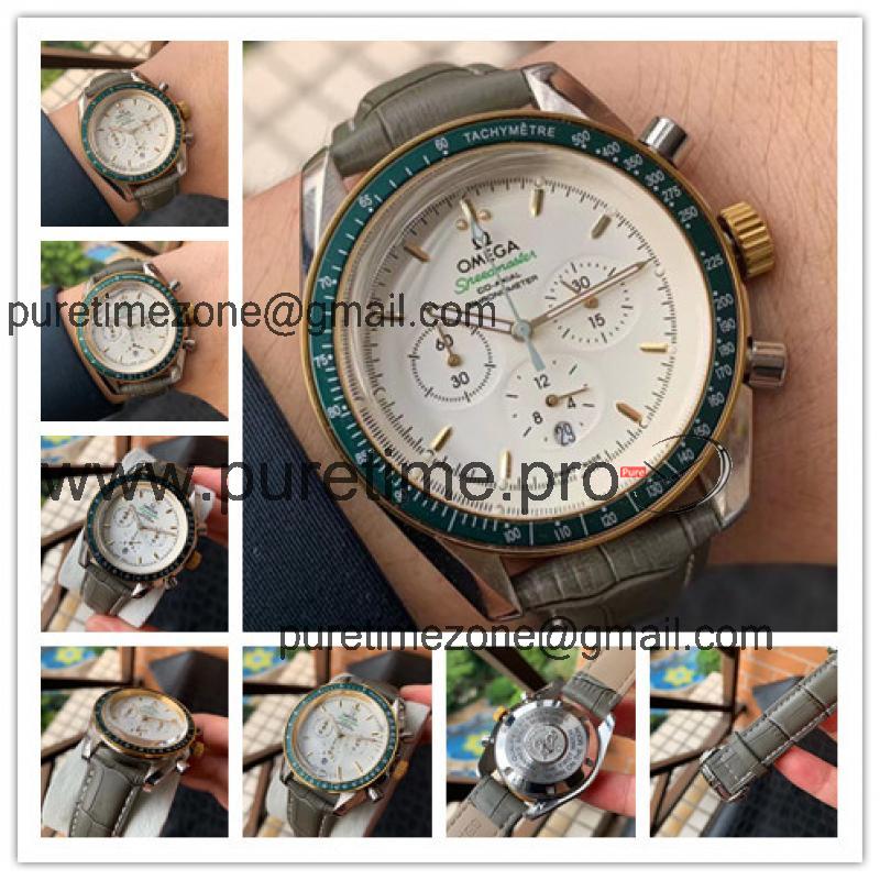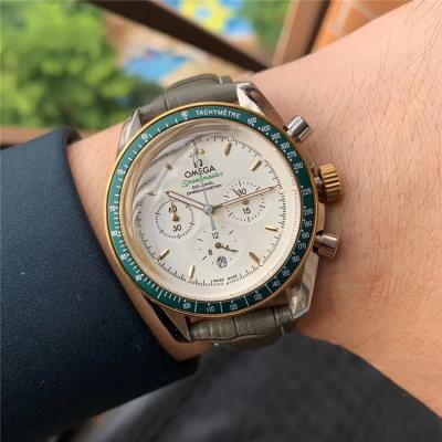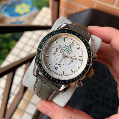 Replica Speedmaster Japan OS Quartz Chronograph Movement Mens Watch White Dial Leather Strap E401