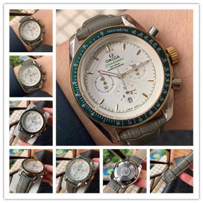 Home AAA-Brand Replica Speedmaster Japan OS Quartz Chronograph Movement Mens Watch White Dial Leather Strap E401