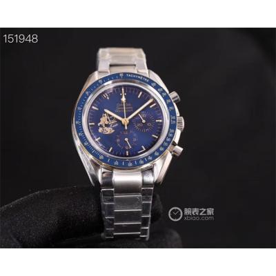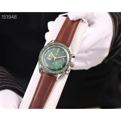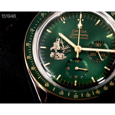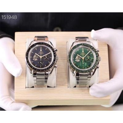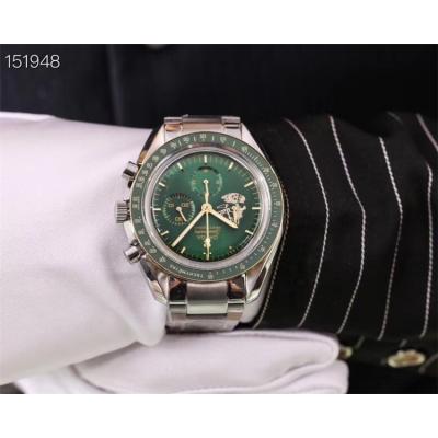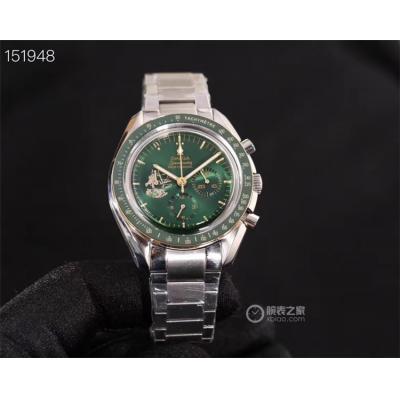 Replica Speedmaster Japan VK Quartz Chronograph Movement Mens Watch Green Dial Stainless Steel A E174