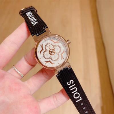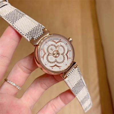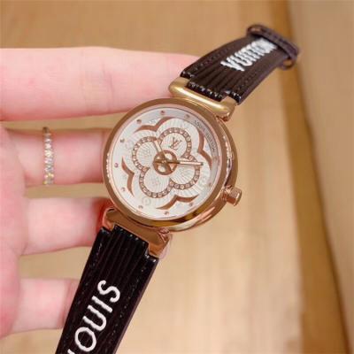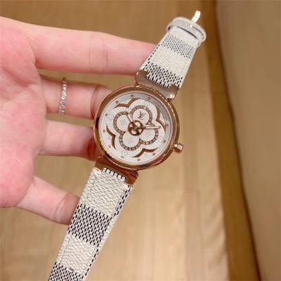 Replica Tambour Moon Swiss Quartz Movement Womens Watch Monogram Dial Leather Strap F01