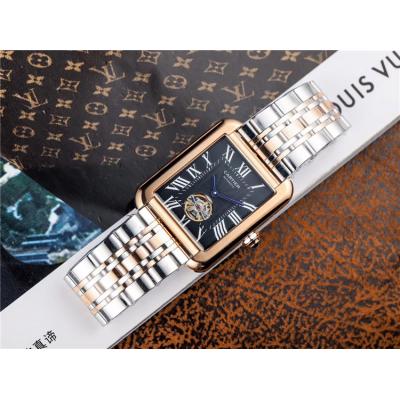 Replica Tank A21j Automatic Movement Mens Watch Black Dial Two Tone Rose Gold B E117