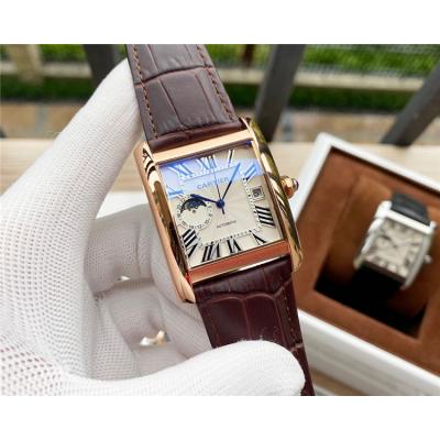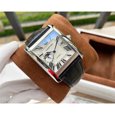 Replica Tank A21j Automatic Movement Mens Watch White Dial Leather Strap E146