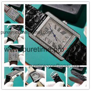 Replica Tank Japan Miyota 8215 Automatic Movement Mens Watch Full Diamonds Dial Leather Strap E165 $276.00 $230.00