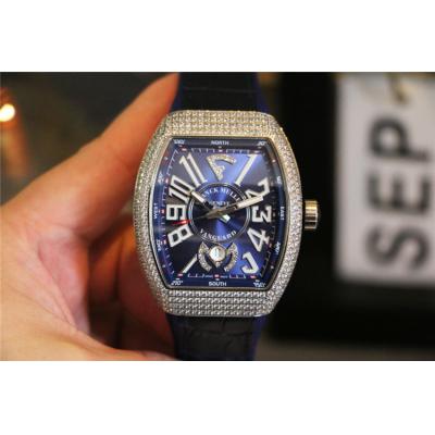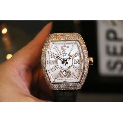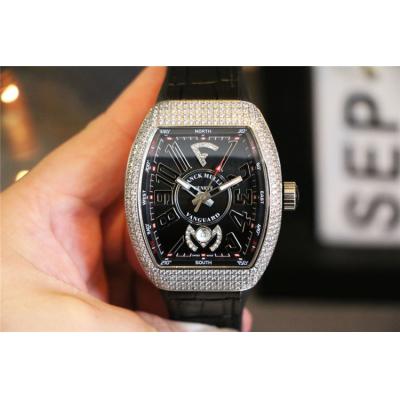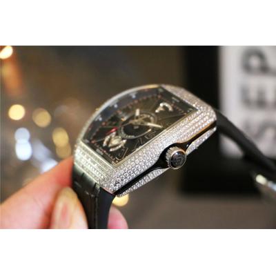Replica Vanguard A21j Automatic Movement Mens Watch Black Dial Diamonds Case Leather Strap E160