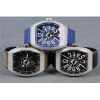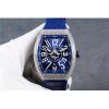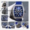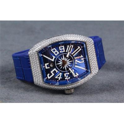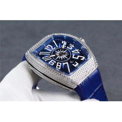 Replica Vanguard A21j Automatic Movement Mens Watch Blue Dial Full Diamonds Case Leather Strap B E126